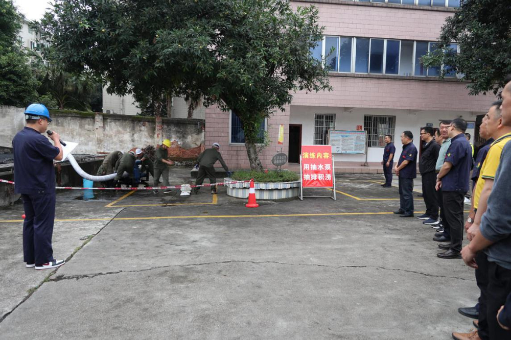 本次演练主要有两方面内容: 一是排除内涝,模拟抽排积涝演习;二是封堵仓门,模拟加固加高仓门挡水墙演习。