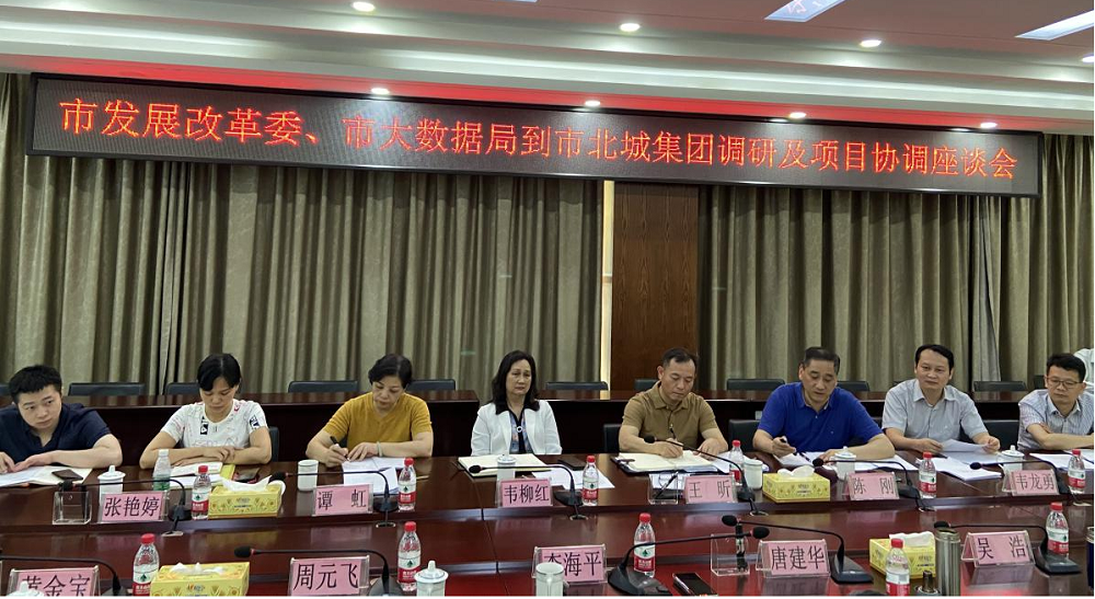 北部生态新区管委会主任王颖、副主任吴浩,市发展改革委副主任韦柳红,市信息中心主任韦龙勇,市北城集团董事长唐建华、总经理李海平、副总经理周元飞、副总经理郭铁军参加调研和座谈。