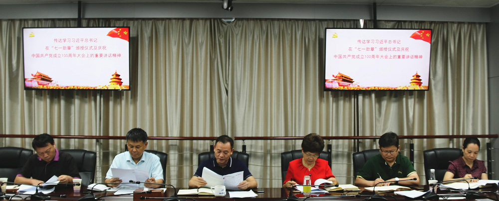 2021年7月2日,柳州市发展和改革委员会召开党组(扩大)会议,传达学习习近平总书记在“七一勋章”颁授仪式和庆祝中国共产党成立100周年大会上的重要讲话精神,研究贯彻落实意见。市发展改革委党组书记、主任王昕主持,市发展改革委班子成员参会。