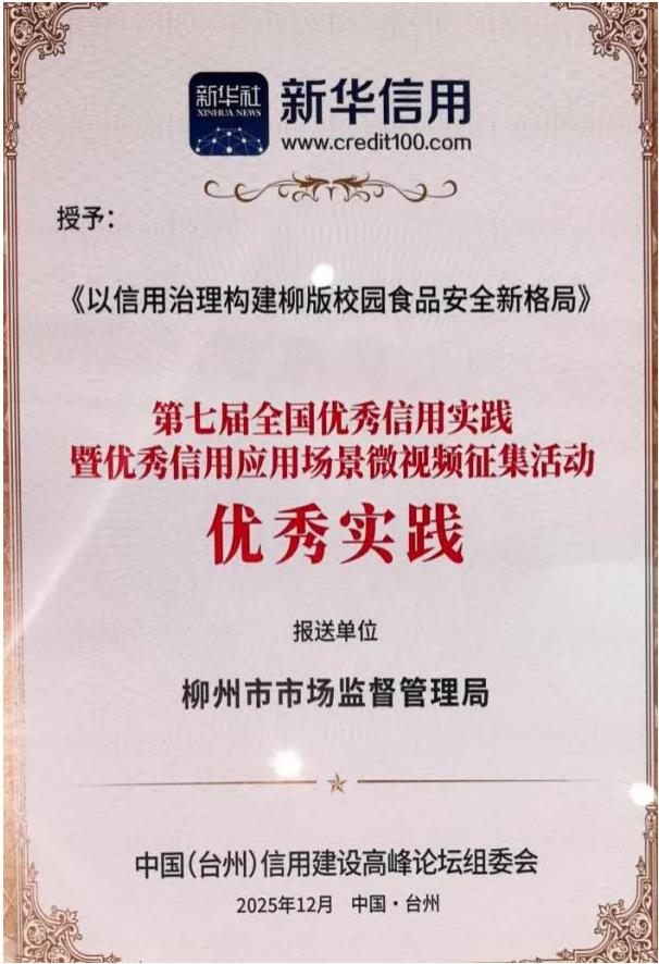 12月12日—14日,中国城市信用建设高峰论坛在浙江省台州市举办,主题是“弘扬诚信文化 繁荣信用经济”。论坛公布了第七届全国优秀信用实践暨优秀信用应用场景微视频征集活动评选结果,经论坛组委会征集遴选以及专家评审,从候选的1767个信用实践、507个微视频中,评选出194个全国优秀信用实践、54个全国优秀信用应用场景微视频,其中,我市1个案例获评全国优秀实践奖,成为此次广西获评全国优秀实践案例的六个案例之一,展现我市作为全国信用建设示范区在信用分类监管的实践成效。