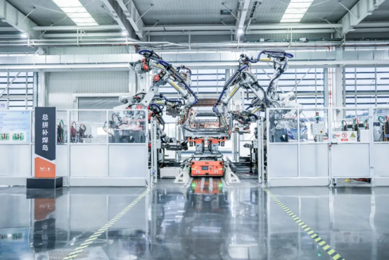 上汽通用五菱智能岛制造体系车身车间,总拼补焊岛正在作业(来源:柳州市融媒体中心)