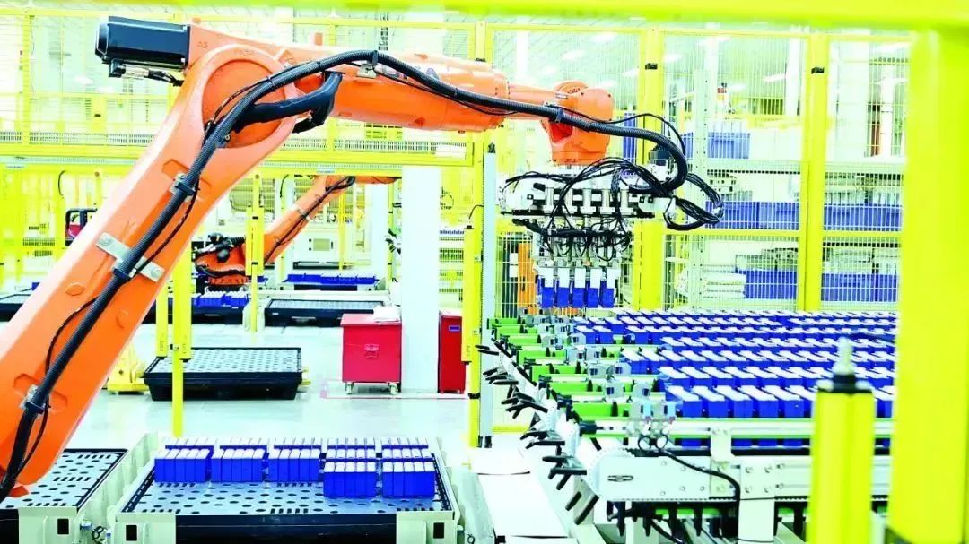 在现场,长长的总装线上,有的工作人员站在复杂的设备前进行精密部件的组装,有的环节则由工业机器人负责。经过一道道环节,一台电驱便诞生了。随后,工作人员用工具将其吊起,对这一关键环节进行测试。通过测试后,电驱便等待运往主机厂,安装到新能源汽车上。